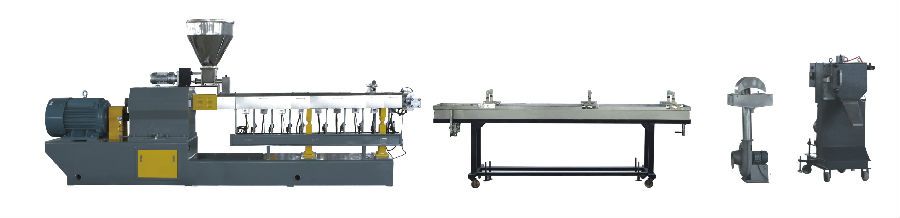 隨著玻璃或碳纖維的加入,大大提高了增強(qiáng)PP的機(jī)械強(qiáng)度和模量,特別是拉伸和沖擊性能。通過對PP機(jī)械屬性的增強(qiáng),其主要應(yīng)用領(lǐng)域擴(kuò)產(chǎn)為汽車、飛機(jī)等行業(yè)。由于市場對金屬的輕質(zhì)替代材料需求急劇增加,纖維增強(qiáng)PP粒子的使用量也迅速增大。雙螺桿造粒機(jī)組在纖維增強(qiáng)PP粒子的生產(chǎn)過程中起著至關(guān)重要的作用。我們的雙螺桿造粒機(jī)可以同時加工纖維和PP,在熔融PP的同時,長纖維可以從一節(jié)筒體的側(cè)面進(jìn)入,旋轉(zhuǎn)剪切螺桿元件將纖維切割成合適的長度。通過與融化的PP混合浸潤,結(jié)果造粒成為纖維增強(qiáng)PP塑料粒子。對于纖維增強(qiáng)熱塑性造粒,建議采用水冷拉條造粒。